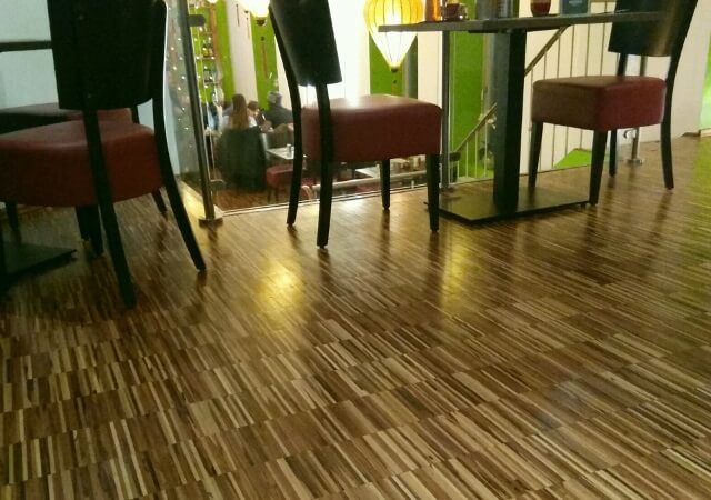 Возможность шлифовки покрытия из индустриального паркета по мере возникновения механического износа практически во всю толщину, а также невосприимчивость паркета к изменениям влажности и температуры в помещении из-за специфики раскроя и малого размера планок позволяют укладывать паркет в магазинах, гостиницах, офисах, школах и детских садах.