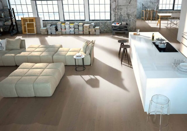 - Общая толщина 11мм позволяет идеально состыковывать паркетную доску с другими напольными покрытиями (плитка, керамогранит, ковровое покрытие) без переходных порогов и перепадов по уровню.